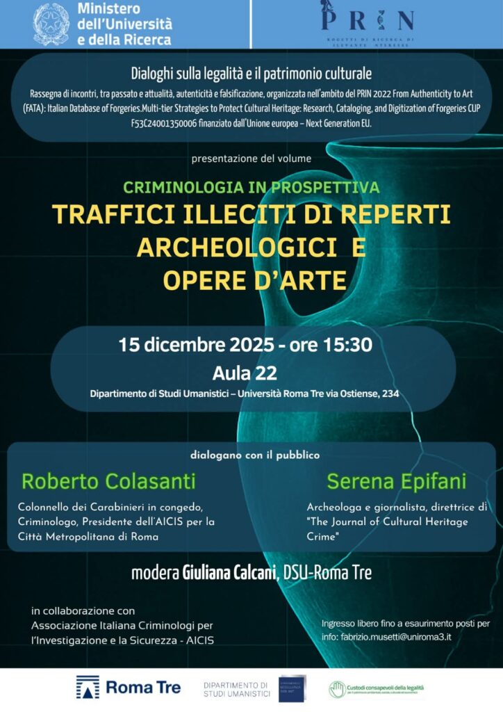 Roma, 15 dicembre 2025 – ore 15:30, Università Roma Tre L’Associazione Italiana Criminologi per l’Investigazione e la Sicurezza (AICIS) è lieta di annunciare un evento di assoluto rilievo culturale e scientifico: la presentazione del volume “Criminologia in prospettiva – Traffici illeciti di reperti archeologici e opere d’arte”, a cura del Dott. Roberto Colasanti, già […]