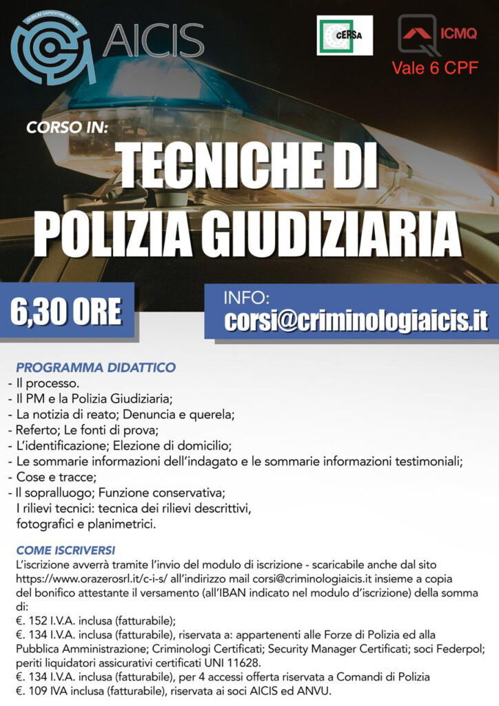 Conoscere il metodo dell’indagine di polizia. Un corso qualificato per operatori di polizia e aspiranti ai concorsi. Valido anche per chi si occupa di indagini difensive.